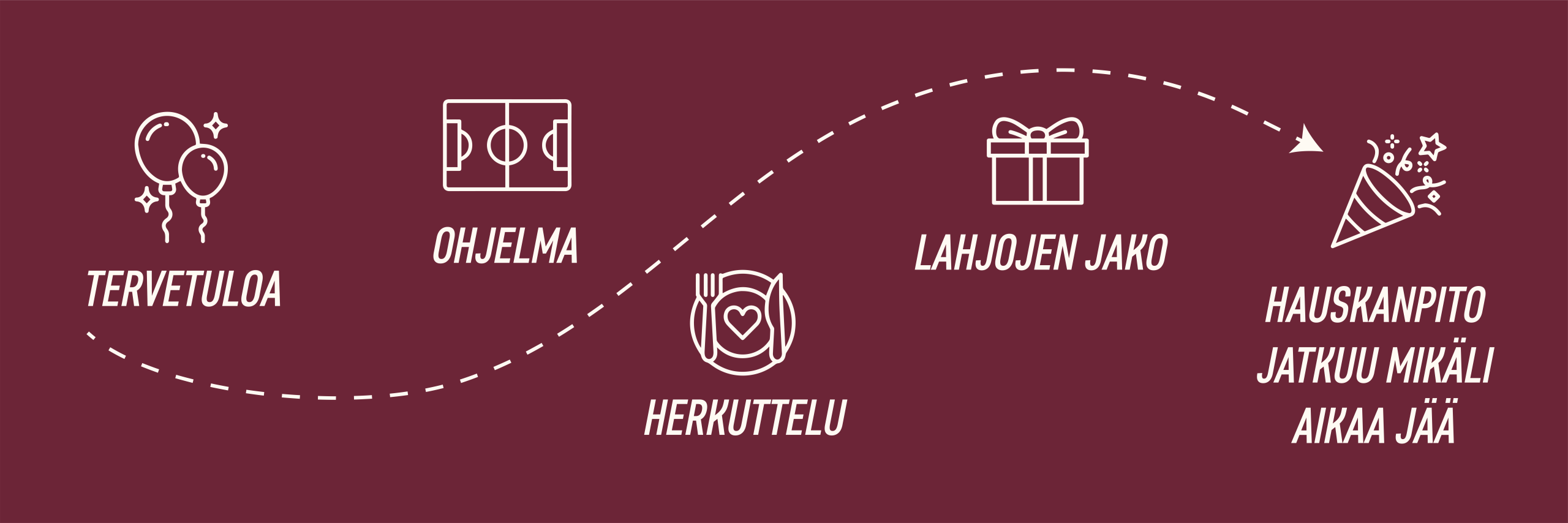 Valitse alta herkkupakettisi. Järjestämme kaiken – teidän tarvitsee vain tulla paikalle.
